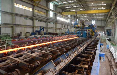 图为太钢一次热成型生产的27米超长不锈钢管。 吕茹 摄