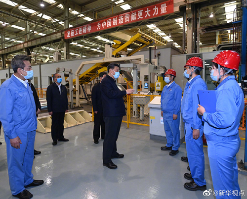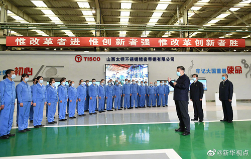 12日上午,正在山西考察的习近平总书记来到太钢不锈钢精密带钢有限公司,走进生产车间了解企业防疫抗疫和生产运行情况,同工人们亲切交谈,叮嘱他们不要麻痹松懈,切实抓好各项防控措施,保持零感染。习近平指出,全国防疫工作进入新阶段,要在继续抓好各项防控措施的前提下,更好复工复产,做到安全生产、健康生产,力争把损失降到最低,努力完成今年的目标任务,为实现“两个一百年”奋斗目标作出贡献。(文字记者:张晓松、朱基钗 摄影记者:李学仁、谢环驰、刘彬)