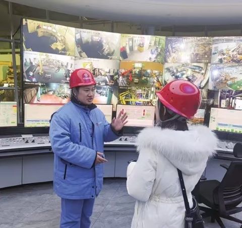 图为廖席正向《中国冶金报》记者介绍2025年新春期间的生产安排(薛志军 摄)