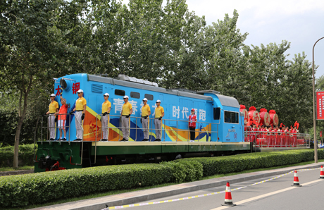 图为二青会火炬在太钢进行火车传递。 武滨 摄