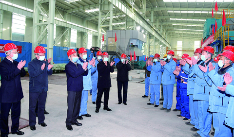 罗清宇来到一期工程刚刚建成的3号廿辊轧机跟前,与建设者代表一一握手,感谢他们为太原市社会进步、城市发展所作的努力和贡献,希望项目经理部为坚守工地的建设者尤其是外省市建设者做好生活安排,让大家过个温暖祥和的好年。