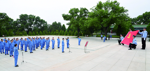 太钢集团总经理、党委副书记魏成文带领大家宣誓,重温入党誓词。