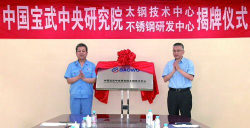 伴随着热烈的掌声,侯安贵、高祥明、魏成文、吴军分别为中国宝武中央研究院太钢技术中心和不锈钢研发中心揭牌。