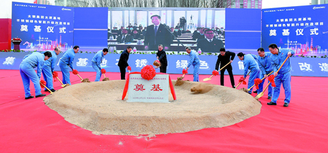 活动现场,干部职工士气高昂整装待发。8时42分,胡望明宣布“中国宝武太钢集团太原基地不锈钢绿色智能升级改造项目正式奠基。”现场锣鼓声声,掌声阵阵,参加仪式的领导共同为项目培土奠基。