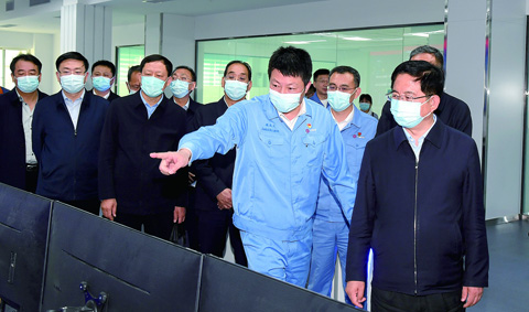 张吉福先后深入太钢冷轧硅钢厂高端取向硅钢生产线、太钢炼钢二厂智控中心,实地查看项目投运情况和智慧管控情况。随后召开现场办公会,与企业负责人深入交流,详细了解企业生产经营、能源保供、物流运输、投资规划和产业链建设等情况,并就企业生产经营中遇到的困难和问题,现场要求相关部门予以答复。