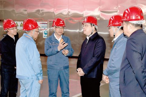 韦韬来到太钢炼铁厂,察看高炉生产情况,走进智控中心,观看企业智能制造视频展示,结合大屏了解烧结、脱硫脱硝等工艺流程,随后主持召开现场办公会,与太钢领导班子共同研究对策,帮助解决生产经营和项目推进中的实际问题。
