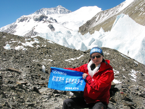 带着不锈钢业界同仁的期盼,带着对太钢的美好祝愿,5月17日上午10时左右,太钢不锈钢材经销协议户肖屹巍成功登上海拔8844.43米的世界第一高峰——珠穆朗玛峰。