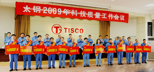 不锈钢股份公司总经理刘复兴在会上宣读了表彰决定。大会对2008年度重点产品SBU、炉料结构优化提质降本SBU、质量工作先进单位、质量-成本最佳操作者/管理者、全国优秀六西格玛项目获得者、省部级以上科技成果及专利、优秀科技人员进行了隆重表彰奖励。其中,技术中心板材研发室主任、高级工程师薛文广,技术中心铁前工艺室高级工程师贺淑珍,二钢厂冶炼工艺主办、工程师刘卫东,焦化项目部三电部部长、工程师祁大鹏,热连轧厂生产技术科副科长、高级工程师侯安全,袁家村铁矿项目部技术室主任、高级工程师韩良德,不锈冷轧厂第二轧制作业区作业长、工程师刘素华,炼铁厂副厂长、高级工程师李强,发电厂余热作业区主管、工程师陈俊,设计院设备室高级工程师胡福生,装备部电器室主任、工程师李海强,自动化公司公辅作业区作业长、高级工程师李宝树,临钢技术中心主任、高级工程师李志恩13名优秀科技人员受到每人10万元的重奖。