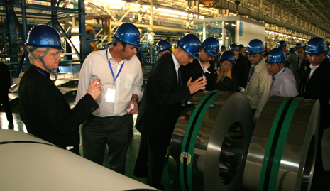 图为海外客户代表参观太钢不锈钢产品。 白治斌 摄