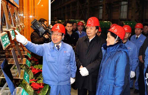 1月29日下午,中共中央政治局委员、国务委员刘延东在山西省委副书记、省长王君的陪同下到太钢考察。