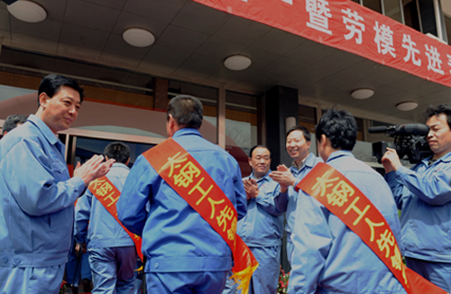 山西省总工会副巡视员盖贵良代表山西省、太原市总工会向受到表彰的劳动模范表示衷心的祝贺,向长期以来为太钢建设发展做出积极贡献的老劳模及太钢全体干部职工致以崇高的敬意。他说,2009年,面对金融危机的影响,太钢取得了骄人成绩,谱写了太钢发展史上的新篇章。这是全体太钢人努力拼搏、攻坚克难的结果。面对新形势,全体太钢职工要大力弘扬劳模精神,学习劳动模范,把工人阶级的伟大品格继续发扬光大,把“咱们工人有力量”的主旋律唱得更响亮,为太钢实现科学发展、安全发展、和谐发展做出新的更大的贡献。