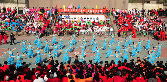 5月1日上午,太钢庆“五一”全民健身汇演在公司体育场隆重举行。公司党委书记杨海贵,党委副书记、纪委书记韩瑞平,公司工会主席王继光,原公司领导王守恭、刘天义,公司工会、组织部、宣传部、离退休管理部、太钢老年文体委负责人,以及太钢职工和家属一起观看了演出。