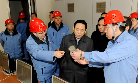 图为山西省副省长任润厚在焦化厂了解脱硫脱氰制酸工艺。 张轩瑜 摄