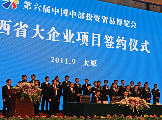 9月27日,第六届中国中部投资贸易博览会省属大企业项目签约仪式在晋祠宾馆举行,太钢两项目在仪式上签约。省委书记、省人大常委会主任袁纯清,省委副书记、省长王君,省政协主席薛延忠出席签约仪式。省委常委、常务副省长李小鹏主持签约仪式。省有关领导出席仪式。太钢董事长李晓波、集团公司总会计师周宜洲出席了签约仪式。