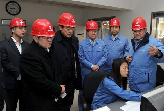 图为徐乐江(左二)一行在太钢炼铁厂参观时的情景。 白治斌 摄