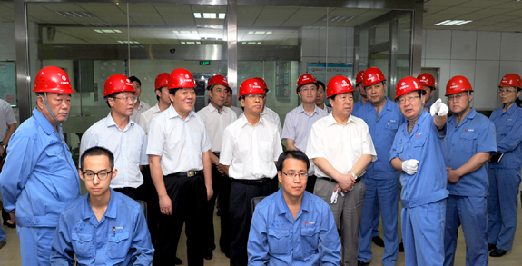 公司董事长李晓波、集团公司总经理高祥明、不锈钢股份公司总经理刘复兴陪同周生贤深入烧结烟气脱硫脱硝制酸、城市生活污水处理中心、4350立方米高炉等生产现场参观。