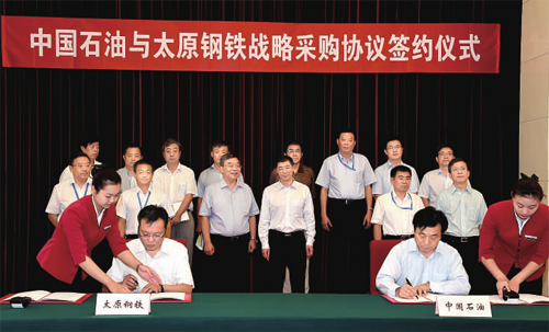 7月18日,太钢与中国石油天然气集团在北京正式签署《战略合作采购协议》,这是继2007年双方签订《战略合作框架协议》以来的又一重大举措,标志着全球最大的不锈钢企业与全球名列前茅的综合性能源公司在经历前期的合作之后,彼此合作达到新的高度,双方联系将更加紧密,再掀双方共赢发展新篇章。